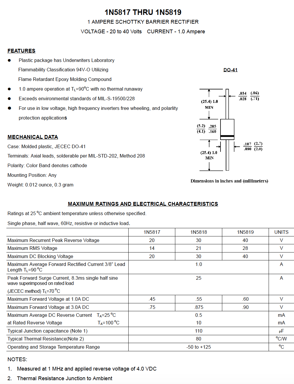 肖特基二極管 DO-41封裝